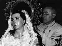 Cuando en 1966, inicie mi vida nazarena ingresando en la Cofradía de la Misericordia, no podía imaginar lo que influiría en mi vida el llevar sobre mis hombros a los Cristos de la Esperanza, Perdón y Misericordia, ellos me enseñaron el camino, porque en la vida nunca se debe perder la Esperanza de conseguir un mundo mejor en donde los hombres sepamos Perdonar y sobre todo tener Misericordia de nuestros semejantes, tres facetas que yo he intentado practicar a lo largo de mi vida. Con todo, sentía que mi vida nazarena estaba incompleta, me faltaba algo, no sé que, pero algo dentro de mi corazón se manifestaba pidiéndome más, por eso en la primavera de 1988 cuando nuestra Cofradía pone en marcha la creación de un nuevo trono, no lo pensé, e inicié la aventura más hermosa de mi vida, no fue fácil abandonar al Cristo, en realidad no lo abandoné ya que seguiría con Él, iría unos metros más atrás y sé que Él, lo comprendería, ya que jamás ningún Viernes Santo estaría solo por las calles de Murcia, su Madre a hombros de sus hijos, la llevarían tras él, esa Madre que lleva en su cara el dolor por la pérdida de su Hijo y al mismo tiempo nos trasmite con su mirada una paz y misericordia, que no encontraremos en ninguna otra.