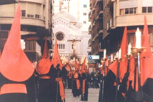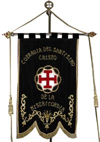 A continuación de la cabecera de la procesión desfila el Tercio del titular, el Cristo de la Misericordia, precediendo al trono, cuyos nazarenos penitentes desfilan en dos columnas portando un cirio. Los nazarenos penitentes de todos los tercios así como los mayordomos, visten todos la misma túnica negra, fajín y caperuz que les tapa la cara. Los estantes visten la habitual túnica huertana con los colores de la cofradía.